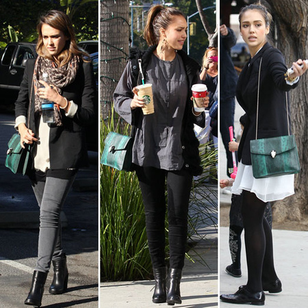 女星蕾頓米絲特(左)也拿跟潔西卡艾芭一樣的花色只是大小不同。